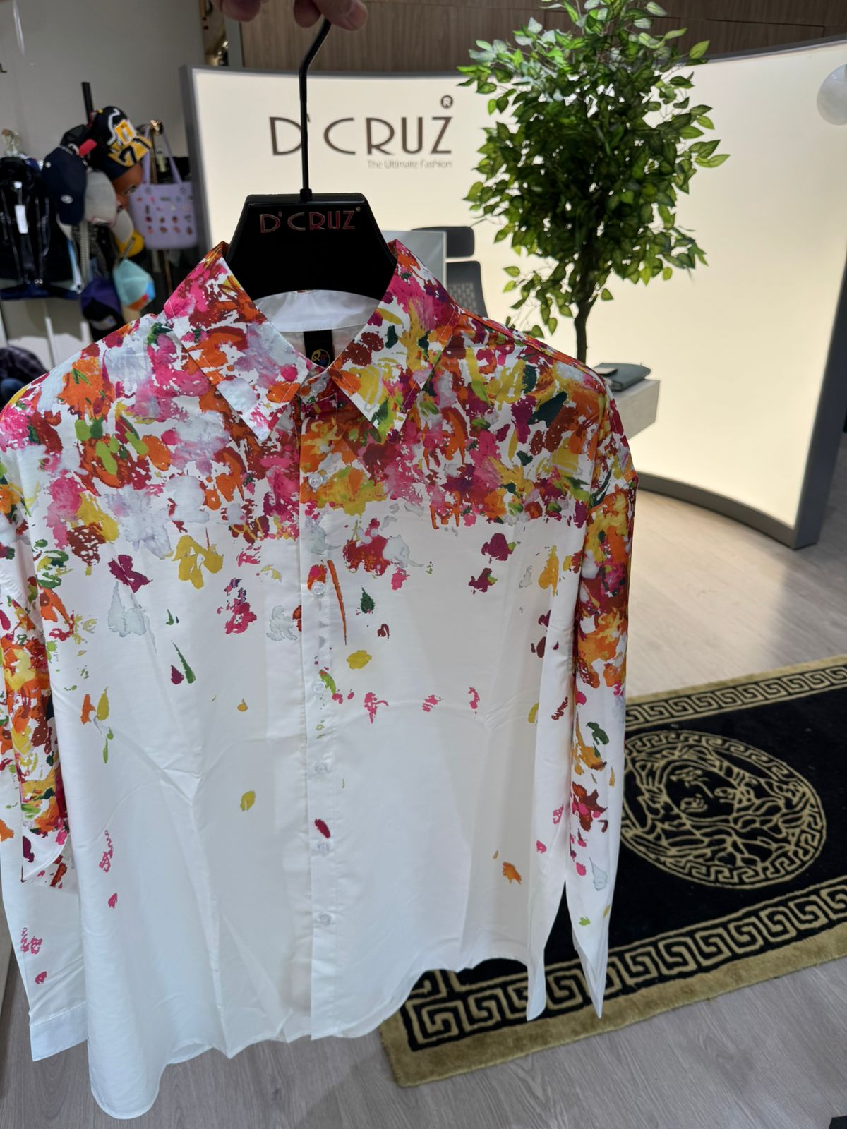 Brighten up your wardrobe with the D’CRUZ Abstract Floral Splash Shirt, a bold mix of elegance and creativity. This crisp white button-down shirt is decorated with an all-over multicolor paint-splatter floral effect in shades of pink, orange, yellow, and green. Its long-sleeve design and tailored cut make it versatile for both casual and semi-formal occasions, while the vibrant print adds a lively, fashion-forward touch.