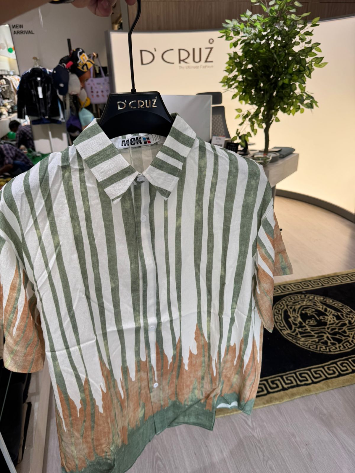 Make a bold yet casual statement with the MOK Vertical Stripe Gradient Shirt. Featuring vertical green stripes that flow into a rust and olive gradient wash at the hem, this short-sleeve button-down shirt strikes the perfect balance between contemporary streetwear and breezy summer vibes. Its lightweight fabric and relaxed fit ensure all-day comfort while keeping your look effortlessly stylish.
